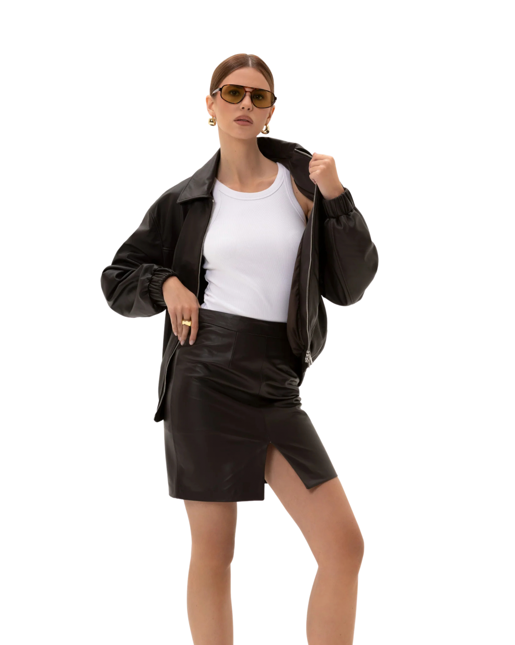 Gonna Pencil in morbidissima pelle di agnello, vita alta, spacco centrale zip nascosta sul retro.