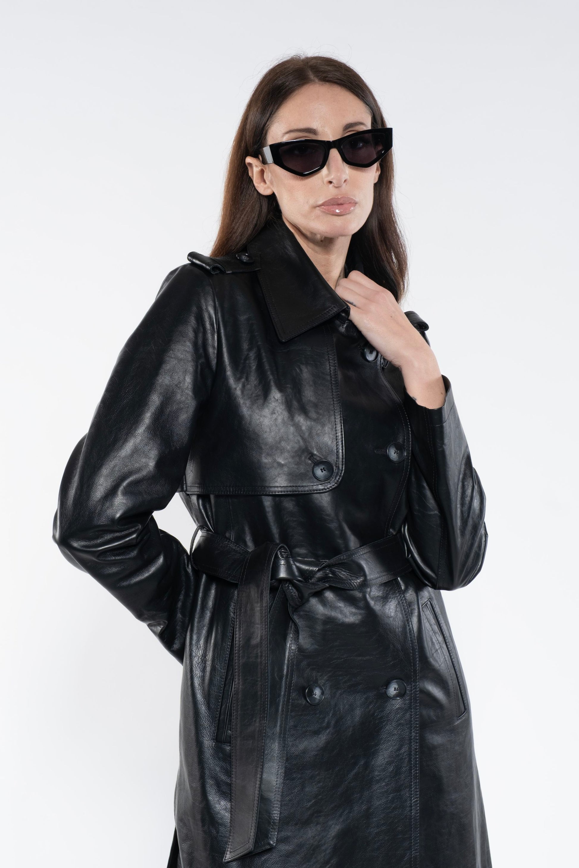 Iconico trench caratterizzato da una silhouette doppio petto, un ampio colletto e polsini con cintura. In nappa morbidissima, coniuga con disinvoltura uno stile senza tempo con la comodità quotidiana.